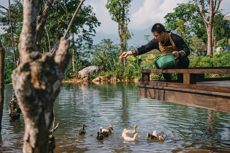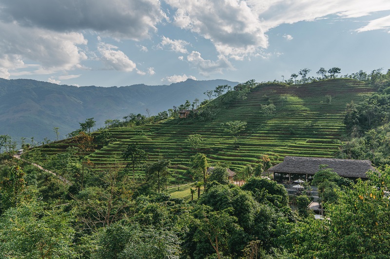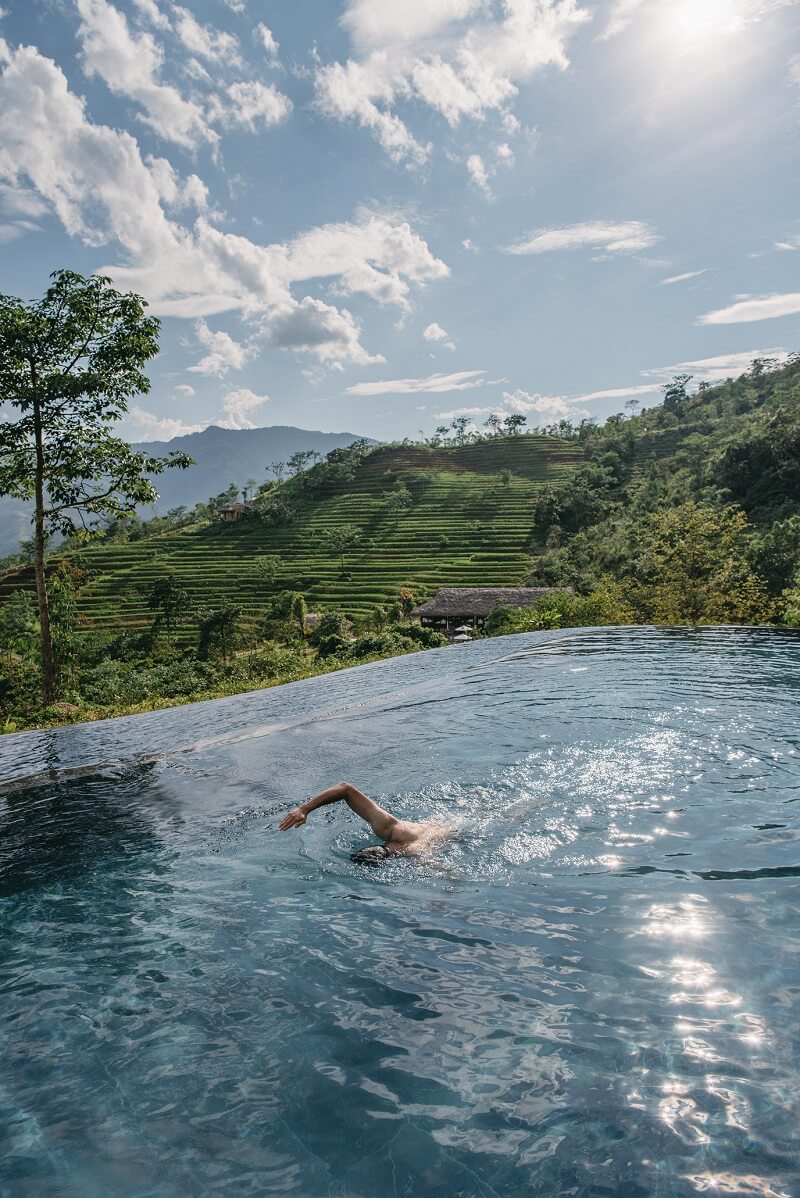 9. Nước bể bơi là nguồn nước tự nhiên từ thác sau khi đã được xử lý cẩn thận để loại bỏ tất cả các tạp chất. Nhìn từ đây, phong cảnh núi rừng, thung lũng và ruộng bậc thang hiện lên tuyệt đẹp, trọn vẹn trong tầm mắt.