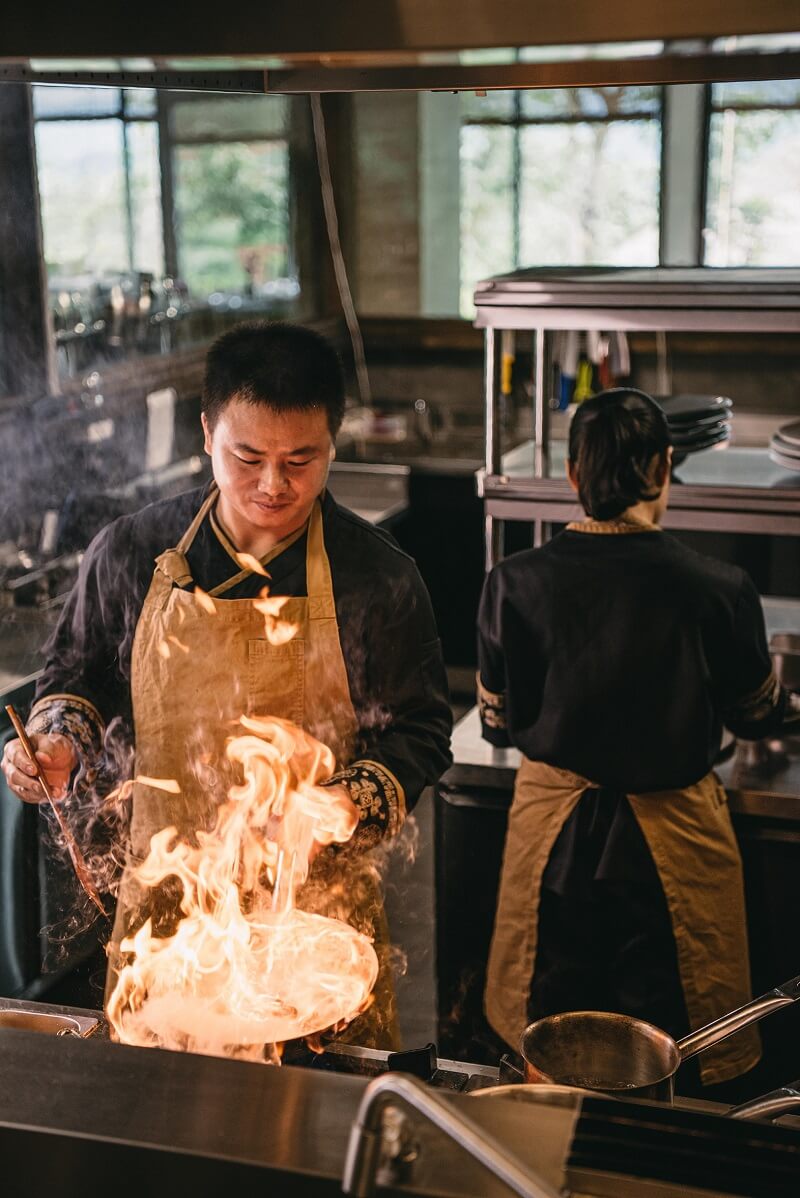 5. Nhà hàng Green Chili nằm ở vị trí thoáng đãng và xinh đẹp. Phía trước là hồ và thác nước nhỏ. Phía sau là ruộng bậc thang xanh ngắt.